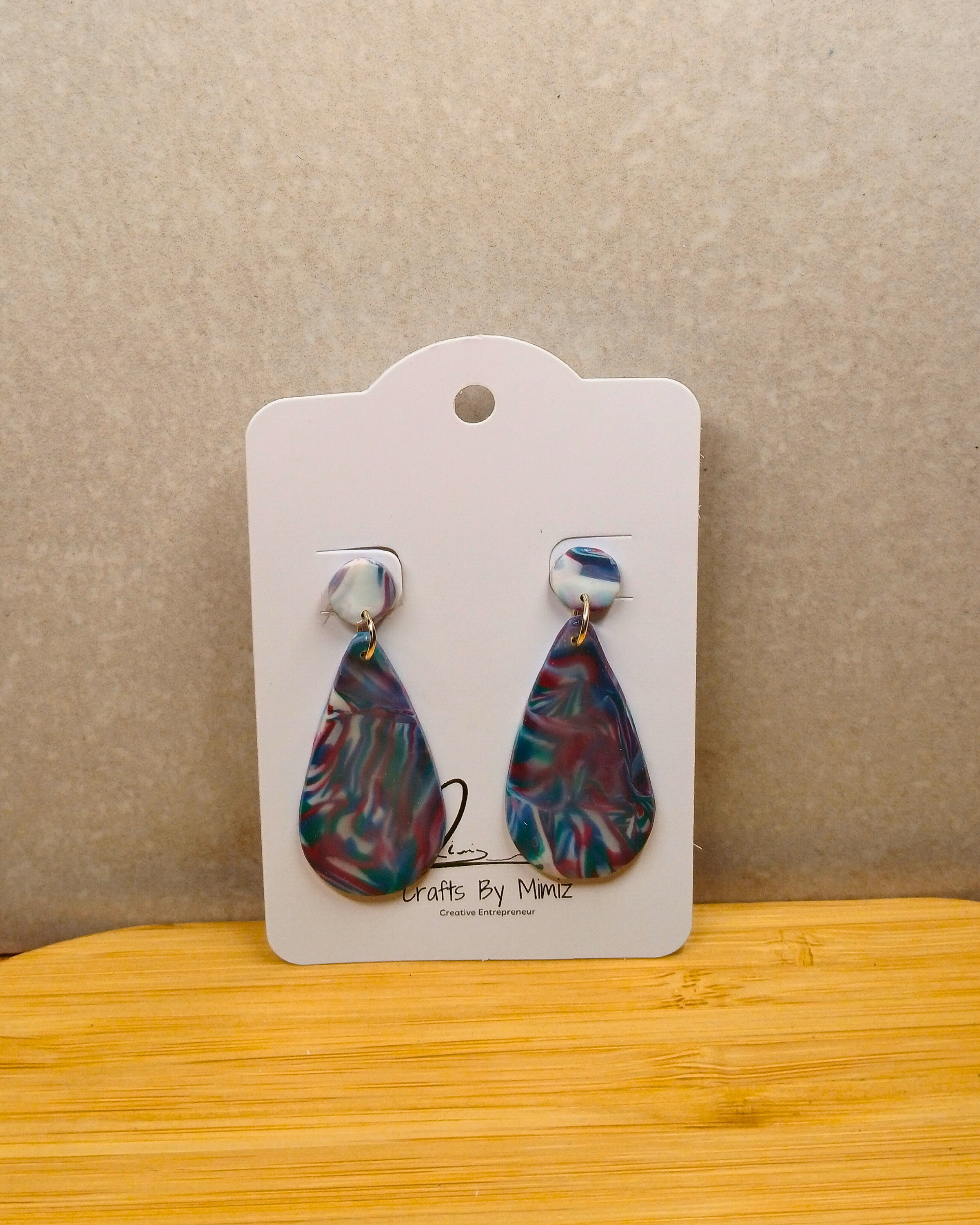 Handmade from polymer clay, these earrings are a unique addition to your jewelry collection. Each pair is carefully shaped and finished by hand, so no two are exactly alike.